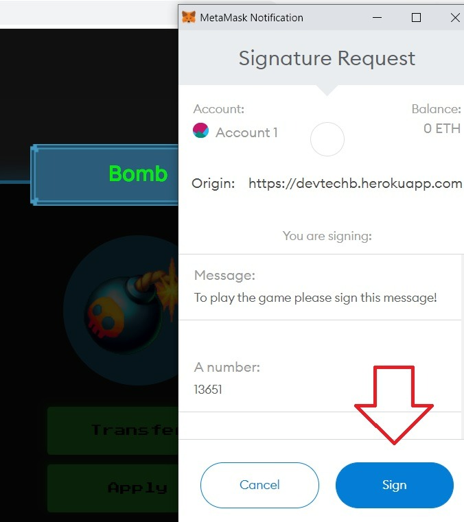 Note: You will often have to confirm actions through Metamask - this is the specifics of blockchain games. Every action on the blockchain from now on must be carried out through the wallet window.